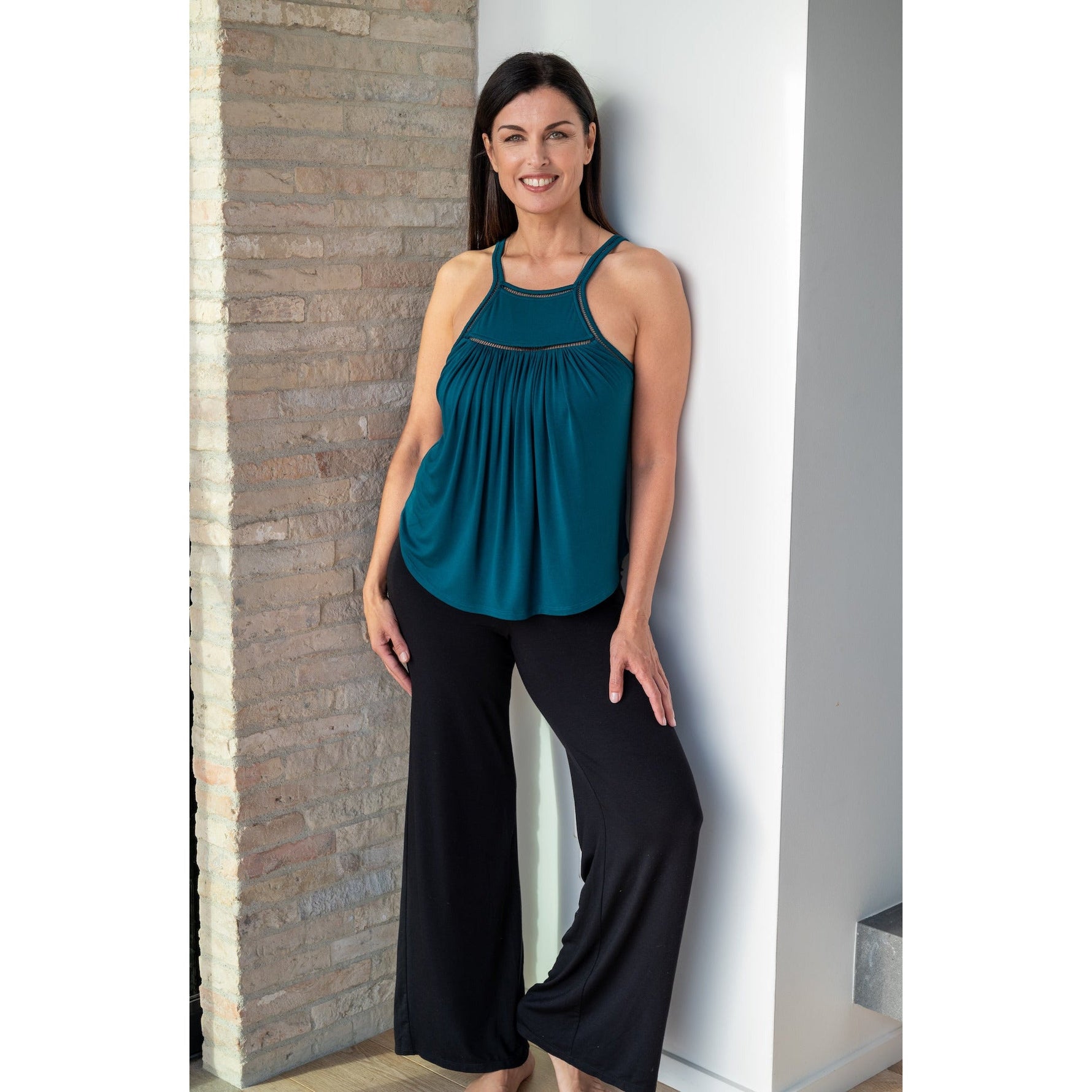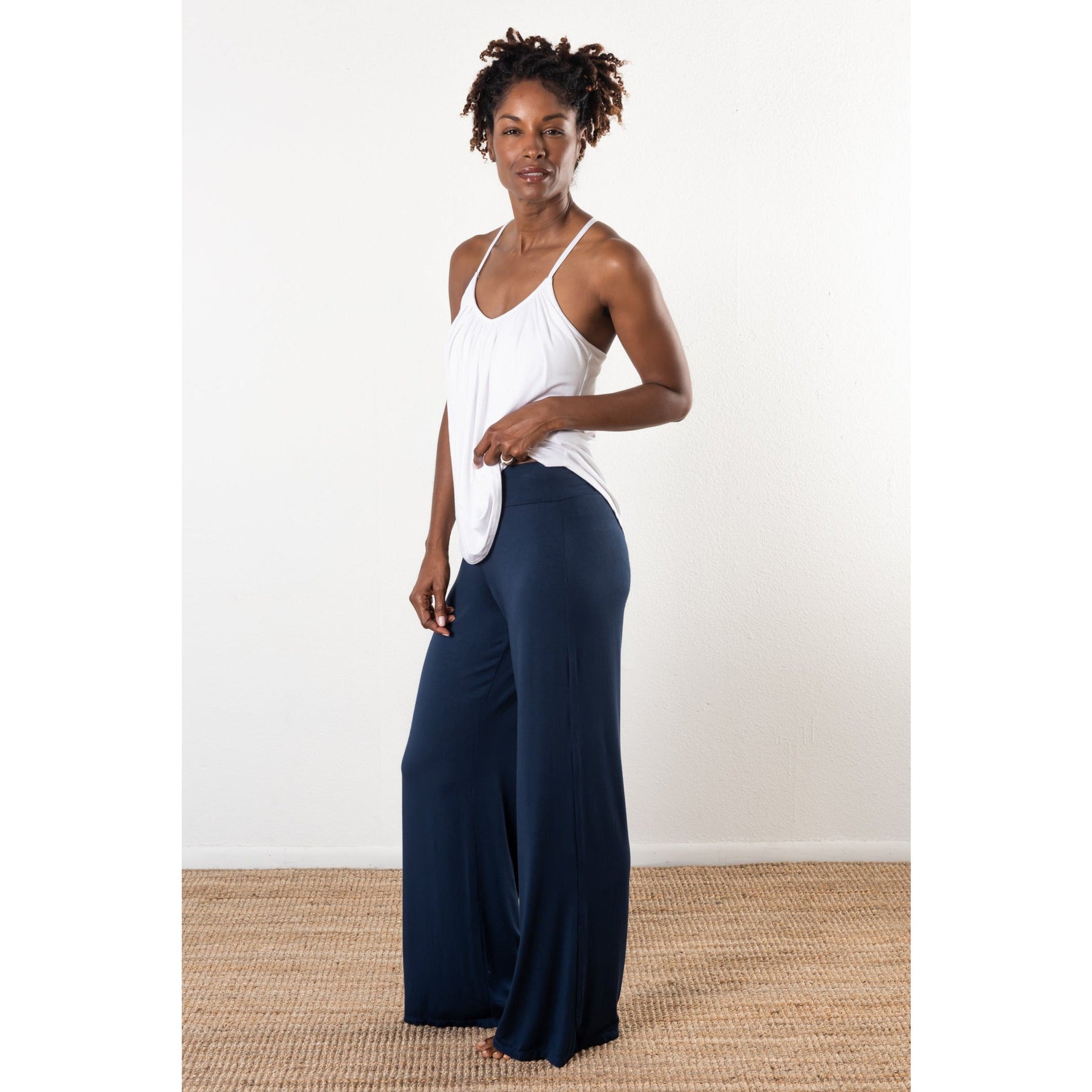 Relaxed palazzo-style leg for a forgiving, flowy fit