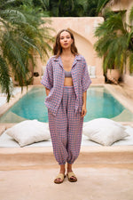 Cut from the same deluxe-quality 100% linen, these balloon-style pants feature a voluminous silhouette that tapers gently at the ankle for a modern yet relaxed shape. The nostalgic gingham pattern adds a touch of charm, making them an effortless match to the coordinating shirt or a standout piece on their own. Our model is 5’7” Size S and is wearing One size. Hand wash cold. Lay flat to dry. 100% linen Handmade with love. Shipping & Returns: Return accepted for store credit only. Please see our Shipping & Returns page for more details.