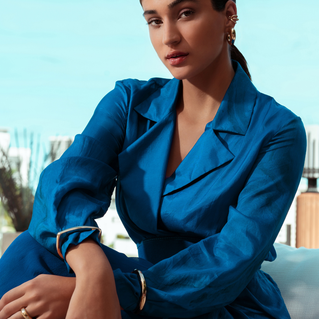 Introducing Sophia Gold Bracelet. With its outstanding geometric, modern design, this bracelet adds a touch of elegance and power to any look. Paired with our Geometric earring, ring, and ear cuff collections, it's the perfect accessory for a polished and stylish ensemble. Elevate your style with Sophia.