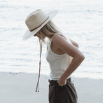 Unit price perA summer-approved straw spin on our classic Vida Rancher. A flexible, crocheted top and woven wide brim plus our classic double wrap leather neck tie make for easy toting. Made by hand from a women’s collective in the mountains of Cuenca, Ecuador who work with Paja Toquilla Straw. This hat is ready for wherever you’re seeking sunshine. Style Notes 100% Ecuadorian Paja Toquilla Flexible tear drop crown 9cm wide brim Vegetable tanned leather tie Elastic inner band