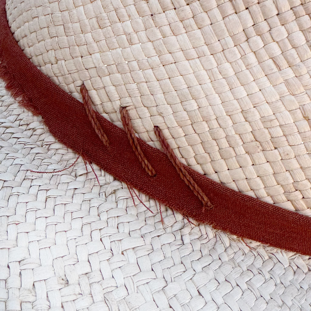 We partnered with writer + explorer, Brianna Madia, to design a one-of-a-kind straw hat. This wide-brimmed hat features an adjustable leather neck tie for easy exploring under the sun. We love the unique cactus shape impressed on the crown of the hat and the woven details, all completely made by hand in our artisan partner's family-run studio. This hat is ready for wherever you’re seeking sunshine at the river. Style Notes 100% Handwoven Ecuadorian Paja Toquilla Hand-pressed cactus crown 10-12cm wide brim Vegetable tanned leather tie Elastic inner band