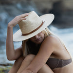 Unit price perA summer-approved straw spin on our classic Vida Rancher. A flexible, crocheted top and woven wide brim plus our classic double wrap leather neck tie make for easy toting. Made by hand from a women’s collective in the mountains of Cuenca, Ecuador who work with Paja Toquilla Straw. This hat is ready for wherever you’re seeking sunshine. Style Notes 100% Ecuadorian Paja Toquilla Flexible tear drop crown 9cm wide brim Vegetable tanned leather tie Elastic inner band