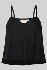 Delicate lace detailing and a deep v-neck come together to create the perfect camisole top in black with a faux wrap effect. Pair this with jeans or a pair of shorts for a complete look.