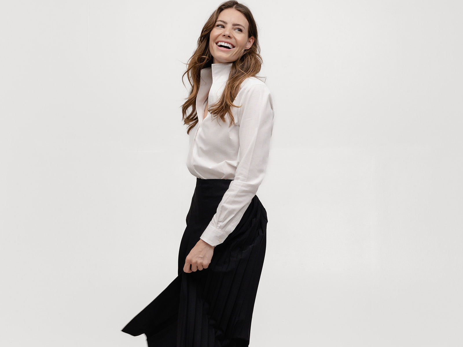 The "Magic" Collar: The patented one-piece collar stays popped and structured, framing your face with architectural elegance.