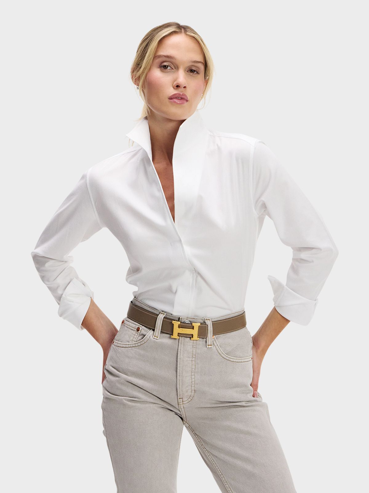 Sartorially influenced by classic menswear but tailored for you, The Right White is the gold standard of button-downs. Crafted from a tightly woven Italian broadcloth, it offers that satisfying, crisp structure you crave in a white shirt. It’s the "go-anywhere, do-anything" staple that looks just as chic worn loose over leggings as it does half-tucked into vintage denim.