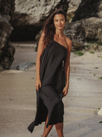 The Pia Maxi Dress is a one-shoulder pull-on maxi dress and is effortlessly elegant. This trapeze silhouette dress is fashioned with a twisted, one-shoulder neckline that extends into a single strap. Featuring a draped panel and subtle asymmetric hem, it is meticulously crafted from 100% Turkish cotton, adding a modern flair to your ensemble. The flattering bias cut of the dress gracefully contours the body, making it a perfect choice for any occasion.
