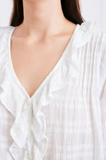 Discover the limited edition Chloe Shirt in a soft lightweight cotton textured plaid. Designed with a voluminous silhouette, she features timeless, feminine details — a delicate ruffle neckline, real shell buttons, and petit pin-tucks — blending comfort with thoughtful design. A true everyday staple, the Chloe Shirt moves seamlessly from day to night and layers beautifully throughout the year.