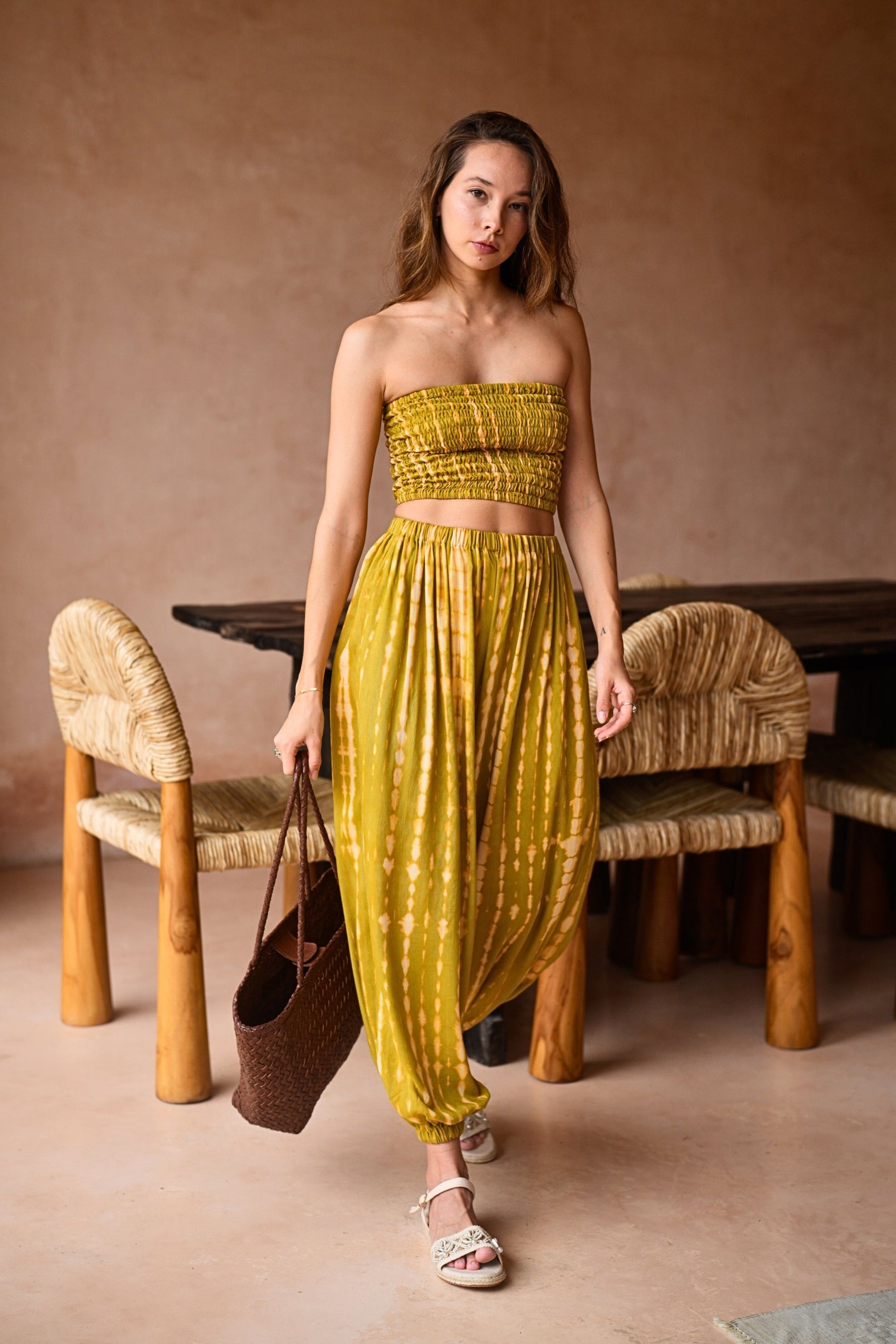 Jane Balloon Pants With Matching Tube Top Set in Lemongrass