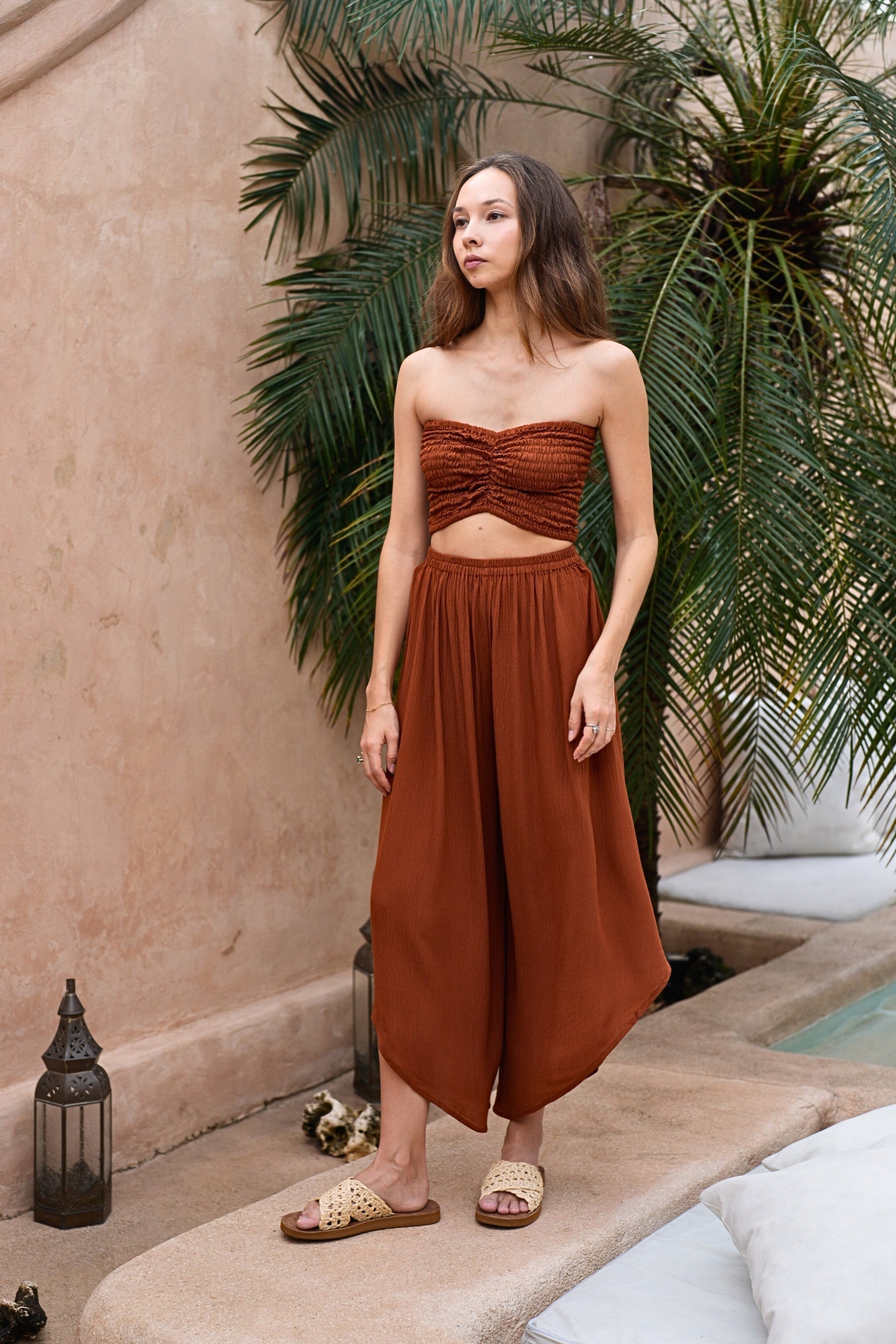 Winona Smocked Tube Top & Asymmetrical Pants Set in Terracotta