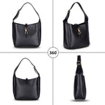 Timeless style awaits with our Azura Genuine Leather Shoulder Bag—the modern classic merges sleek style with practical details for everyday living. Made from the highest-quality genuine leather, it boasts a soft, textured appearance and an eye-catching gold-tone clasp, adding a luxurious touch. An adjustable shoulder strap and roomy interior make it ideal for the office, weekends, or a night out.