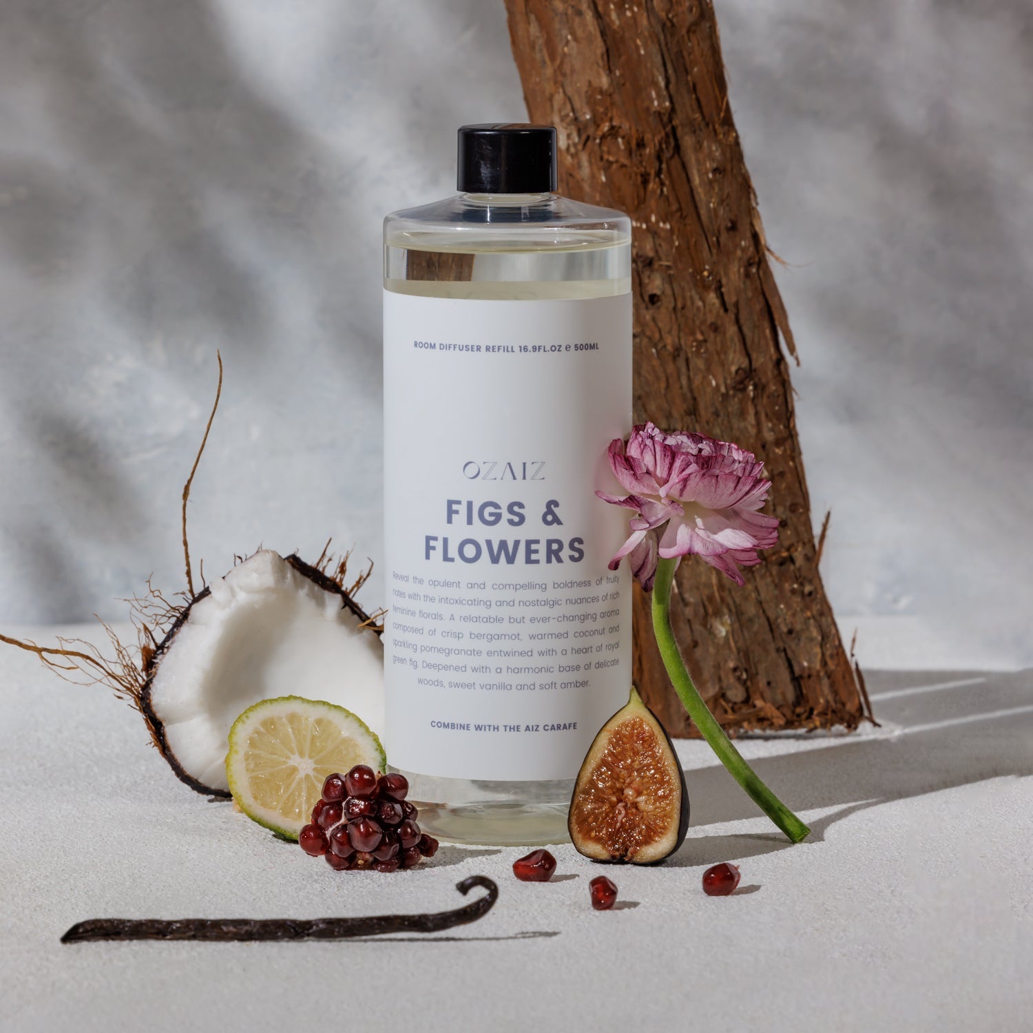 FIGS & FLOWERS Reveal the opulent and compelling boldness of fruity notes with the intoxicating and nostalgic nuances of rich feminine florals. A relatable but ever-changing aroma composed of crisp bergamot, warmed coconut and sparkling pomegranate entwined with a heart of royal green fig. Deepened with a harmonic base of delicate woods, sweet vanilla and soft amber.