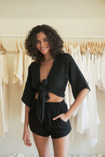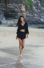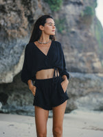 Effortless Echo Boy Short Black is an ideal style for brunch dates or a coffee break. Designed with a breeze from 70’s, will be a timeless piece in your wardrobe that withstands trends for supporting slow fashion. Made with sustainability in mind, this short features breathable fibers. This high elastic waisted short is slightly oversized with side pockets, allowing you to move freely throughout the day.