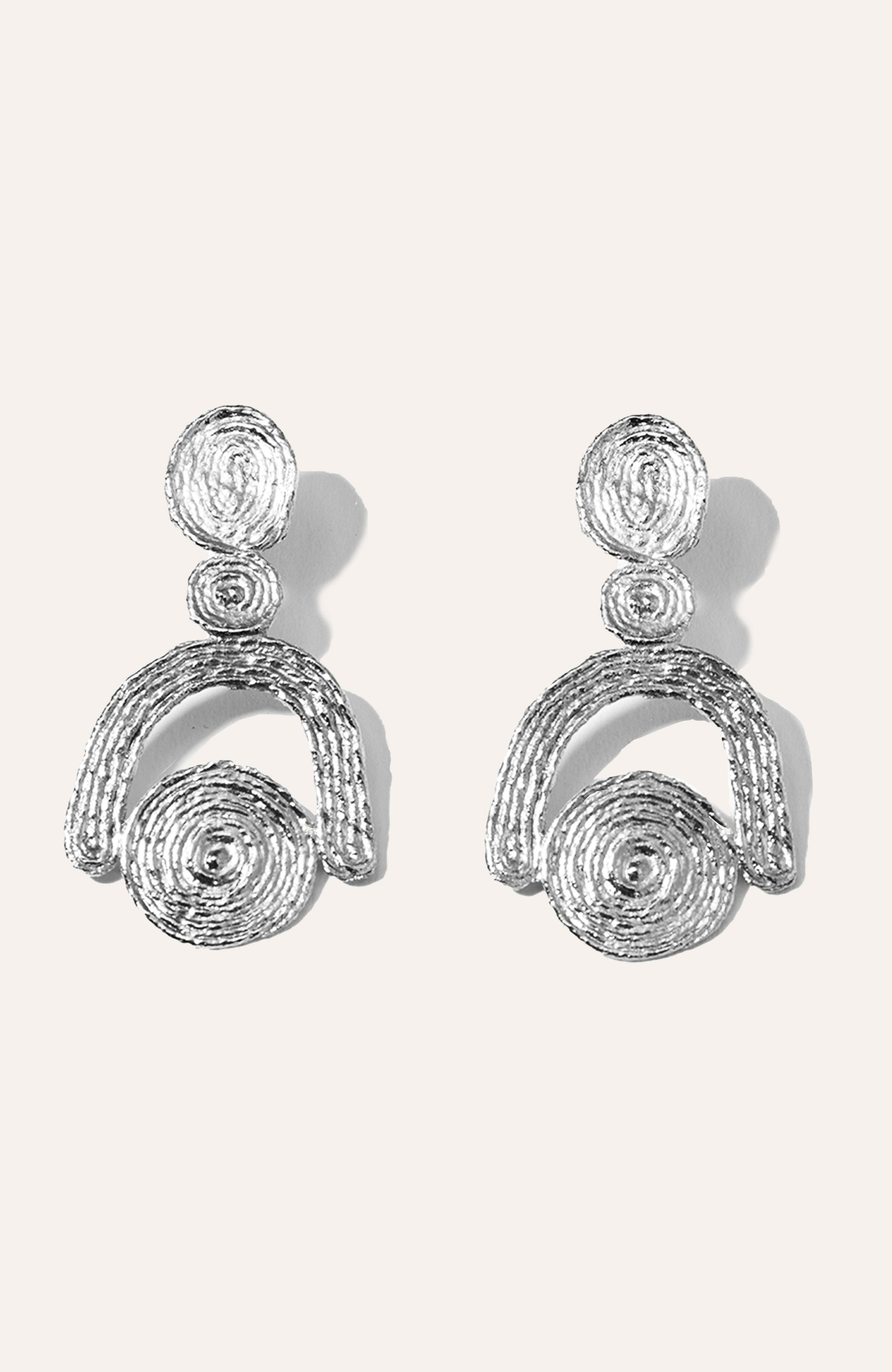 The Frida Earrings are a tribute to both organic forms and artistic legacy, featuring concentric circles and woven-like curves that evoke the fluidity of thread. Inspired by the work of Frida Kahlo and the natural landscape, these oversized statement earrings balance boldness with delicacy.