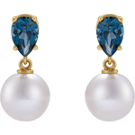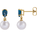 GC London Pearl & Blue Topaz Earrings – 14K Yellow Gold Akoya Pearl