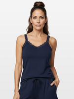 Unit price perThis camisole has been engineered to deliver the ultimate comfort experience. Built-in shelf bra, adjustable straps and soft pre-shrunk stretch lace on the straps and neckline. The fit has slight shaping at the waist. We suggest close to the body fit to maximize the technical properties. Perfect for sleep but doubles as daywear under your favorite cardigan or blazer. Luxuriously soft and proprietary fabric powered by Xirotex™, proven in lab tests to draw perspiration away from the skin quickly and accelerate evaporation for instant comfort.
