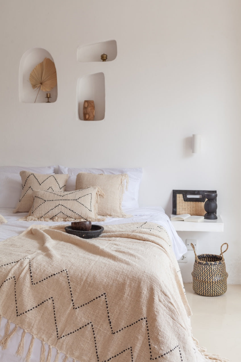 Add a touch of subtle sophistication and warmth to any space with this hand-spun, hand-loomed, 100% organic cotton blanket. Its soft hand and neutral palette allows you to easily upgrade the coziness of your bed, couch or arm chair.