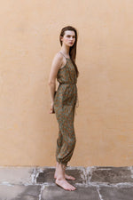 Hand-Printed Simané Jumpsuit (Safari Green)