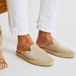Handmade from high-quality locally sourced leather, and comfortable jute soles these leather mules are all you need to hit the streets in style. Named after Lamu Island - part of an archipelago just off the east coast of Kenya. This idyllic roadless island, full of narrow cobblestone alleyways and footpaths, old forts, and elegant rooftop cafes, inspired us to create this effortless shoe. Not only is it one of our favorite places to relax, but it is also the perfect place to stroll and explore in a pair of Lamu Mules. Handmade in Maai Mahiu, Kenya Materials: Genuine Kenyan leather in a soft nubuck finish, traditional jute soles with vulcanized rubber for durability. These leather mules are rich and versatile. Hand beaded signature tab made by our Maasai Maker Mums. Every product supports meaningful, full-time employment in Kenya! Sizing: We recommend sizing 1/2 size up as they run narrow. Not available in wide sizes. The material will stretch & mold to your foot over time. Please note W is for Women's and M is for Men's when reviewing our sizing.