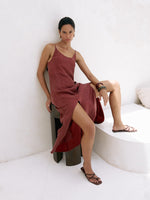 Unit price perFeaturing a feminine scoop neckline, slender adjustable straps, and a striking open-back bow detail, this maxi dress embodies effortless elegance. The fabric's subtle sheen and impeccable drape offer a luxurious finish. High front slits add an element of graceful movement, making it perfect for sunset soirées or sophisticated evenings.