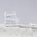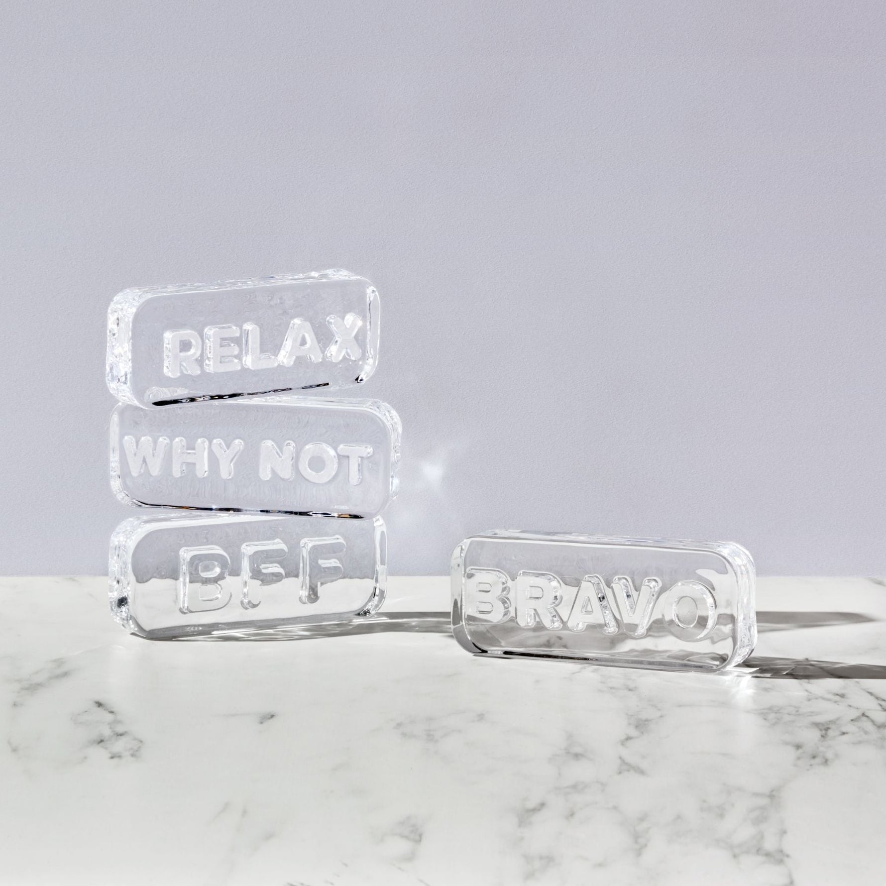 Recognised for its elegant, easy sense of style, the Paroles Paroles collection by Ayşe Birsel + Bibi Seck for NUDE sparks joy in even the most mundane setups. Engraved with the “Relax” message atop a clear crystalline base, it’s a simple yet powerful piece — perfect to showcase solo or with other objects from the range for a unique display.