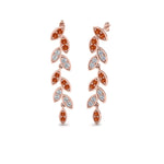 Accent Stone Types: Accent stone choices for the Pave Diamond Leaf Drop Earring are White Diamond, Blue Sapphire, Pink Sapphire, Orange Sapphire, Green Emerald, Red Ruby, and Black Diamond.