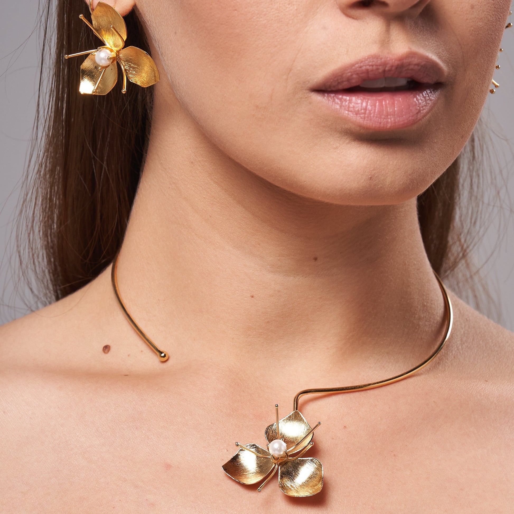 Inspired by nature, these flower-shaped earrings feature detailed petals and a tiny shell pearl at the center — a soft yet striking combination that adds instant personality to any outfit.