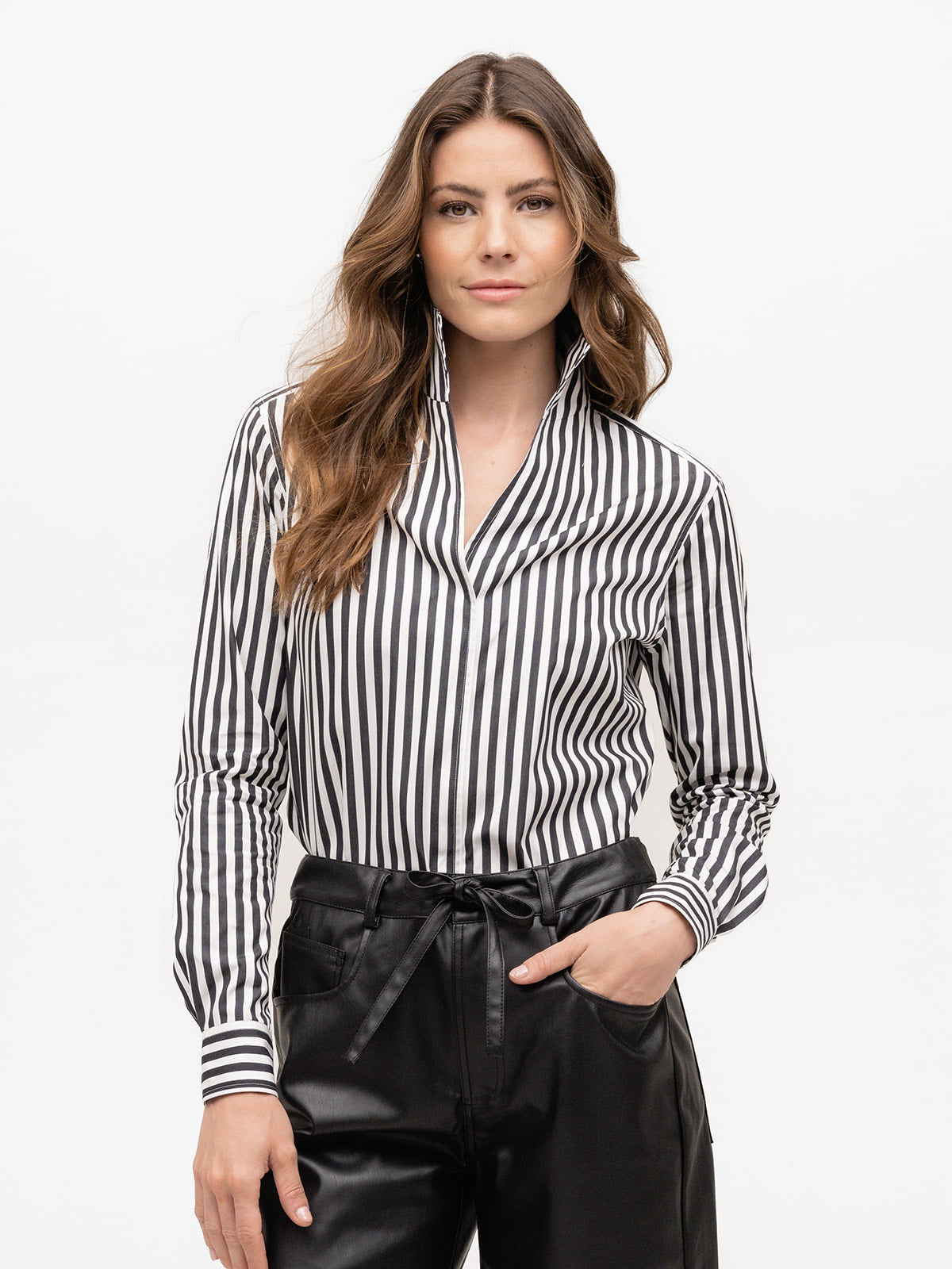Inspired by Daniel Buren’s striking black and white striped columns outside the Palais Royal in Paris, this signature shirt captures the arresting beauty of contemporary art. The graphic stripes are thought-provoking and magical in their simplicity—this is not for playing it quiet and safe.