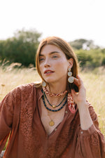 These elegant drop earrings feature handcrafted porcelain discs outlined in shining gold luster. Their wavy silhouette gives them a flowing, organic feel, while their elevated materials give them a sophisticated feel. With their surgical steel posts, these neutral statement earrings are a great pair for sensitive ears.