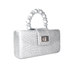 THE SERENA Silver Woven Straw Clutch Bag