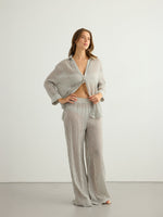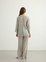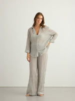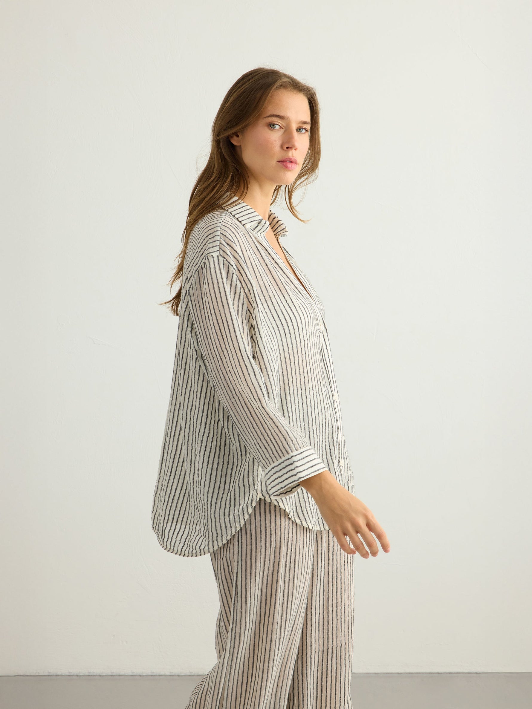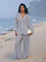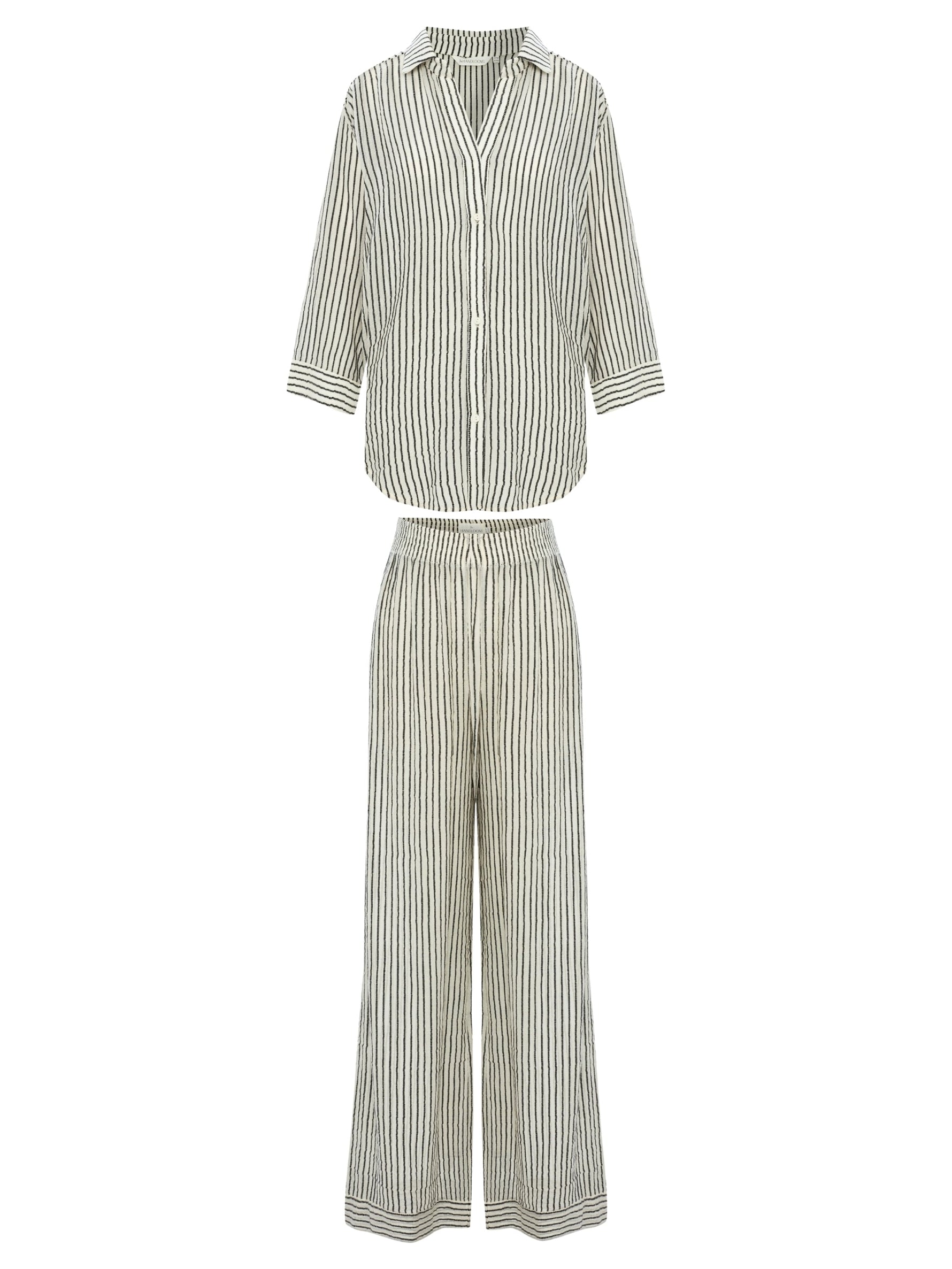 This modern Voyage Set Black Stripes brings a burst of energy for body, mind and style. 100% textured cotton cues calm and coastal while light texture brings freshness to your hot summer days. The Sheer Cotton makes you feel irresistibly comfy and comes with a voyage Pant.