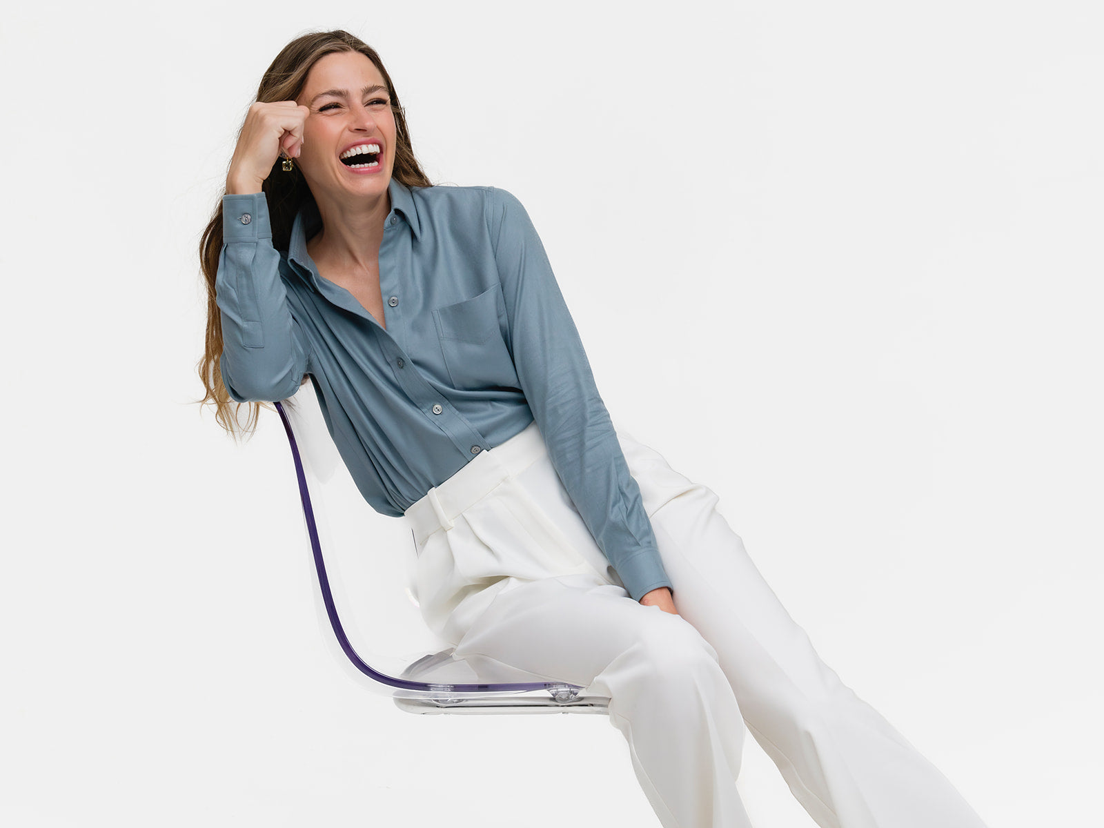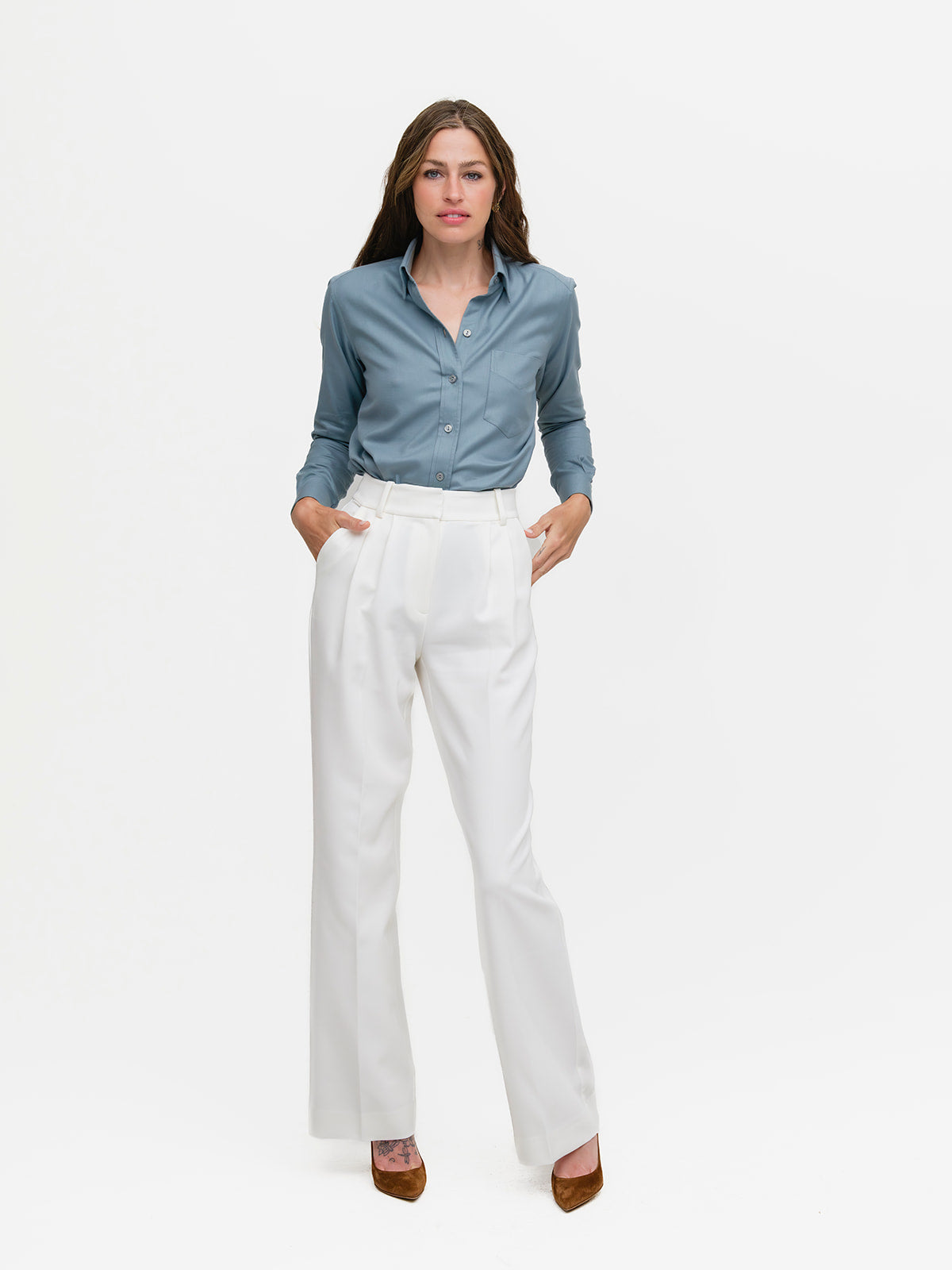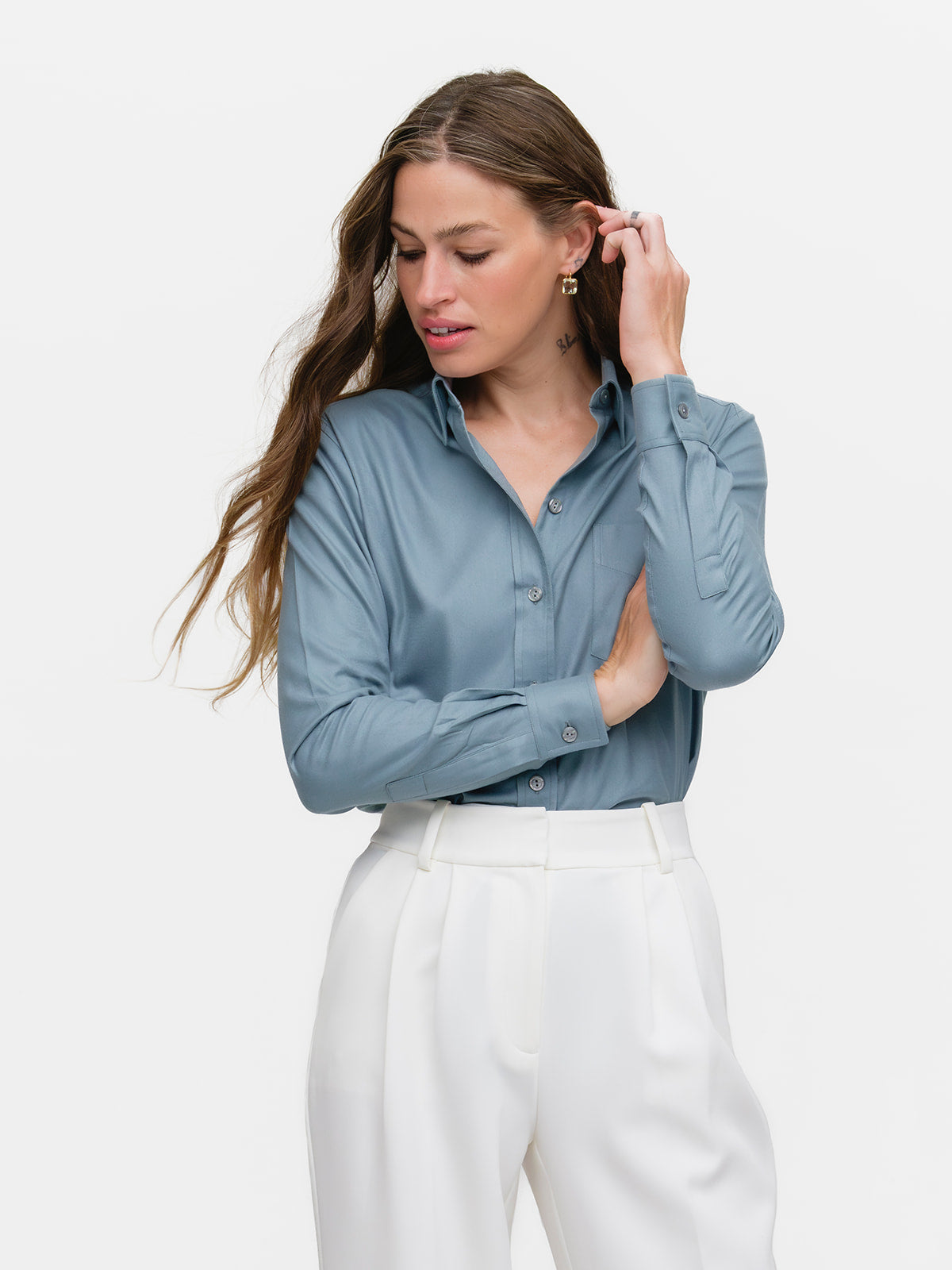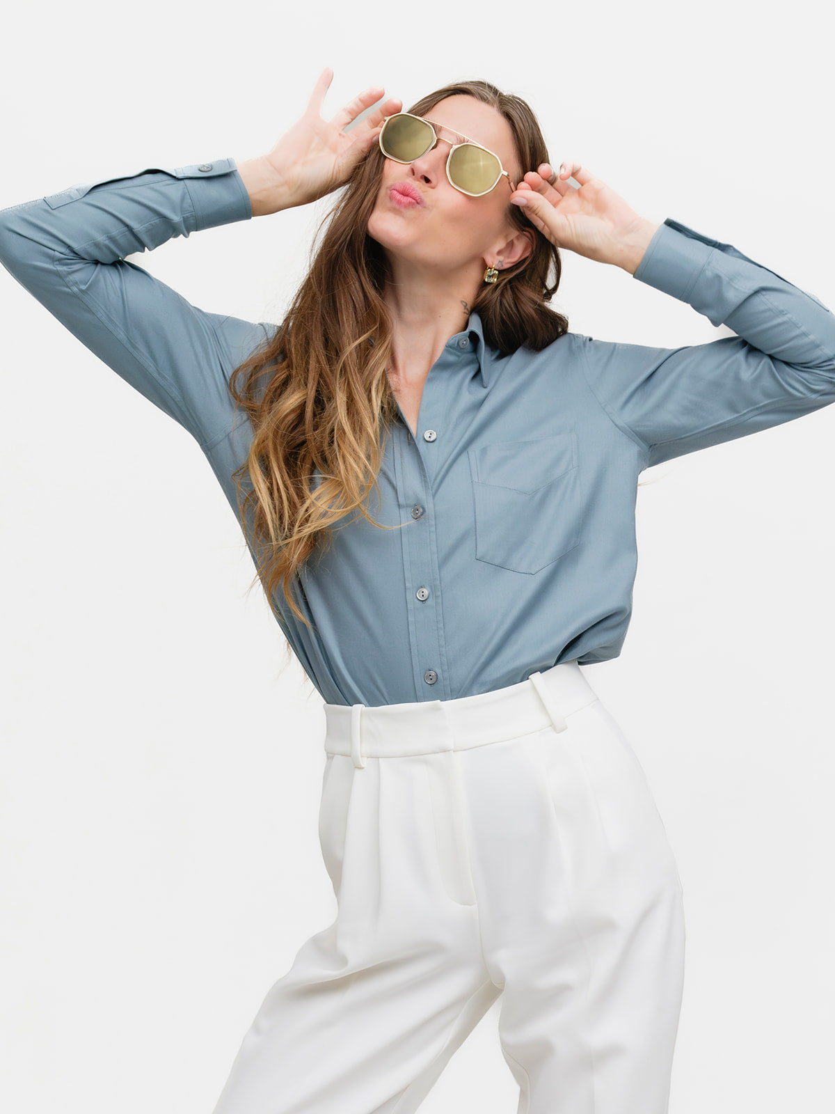 Our menswear inspired Weekend Shirt in a celeste blue cotton/lyocel blend.