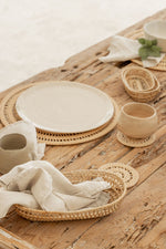 Handcrafted from rattan, the natural texture of these placemats bring an elevated design to any space while also being a practical and durable solution. Sold as a set of four.